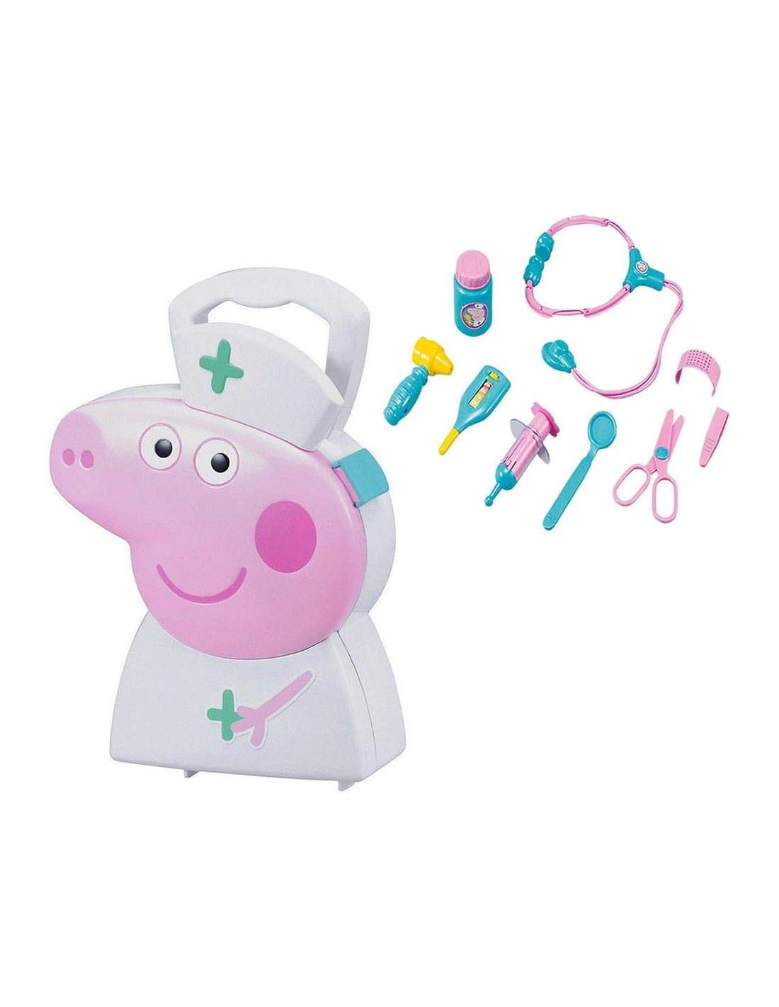 Maletín médico de Peppa Pig. Conviértete en médico y averigua qué le pasa a tus amigos con este adorable maletín de Peppa. Incluye todos los instrumentos para asistencia medica.