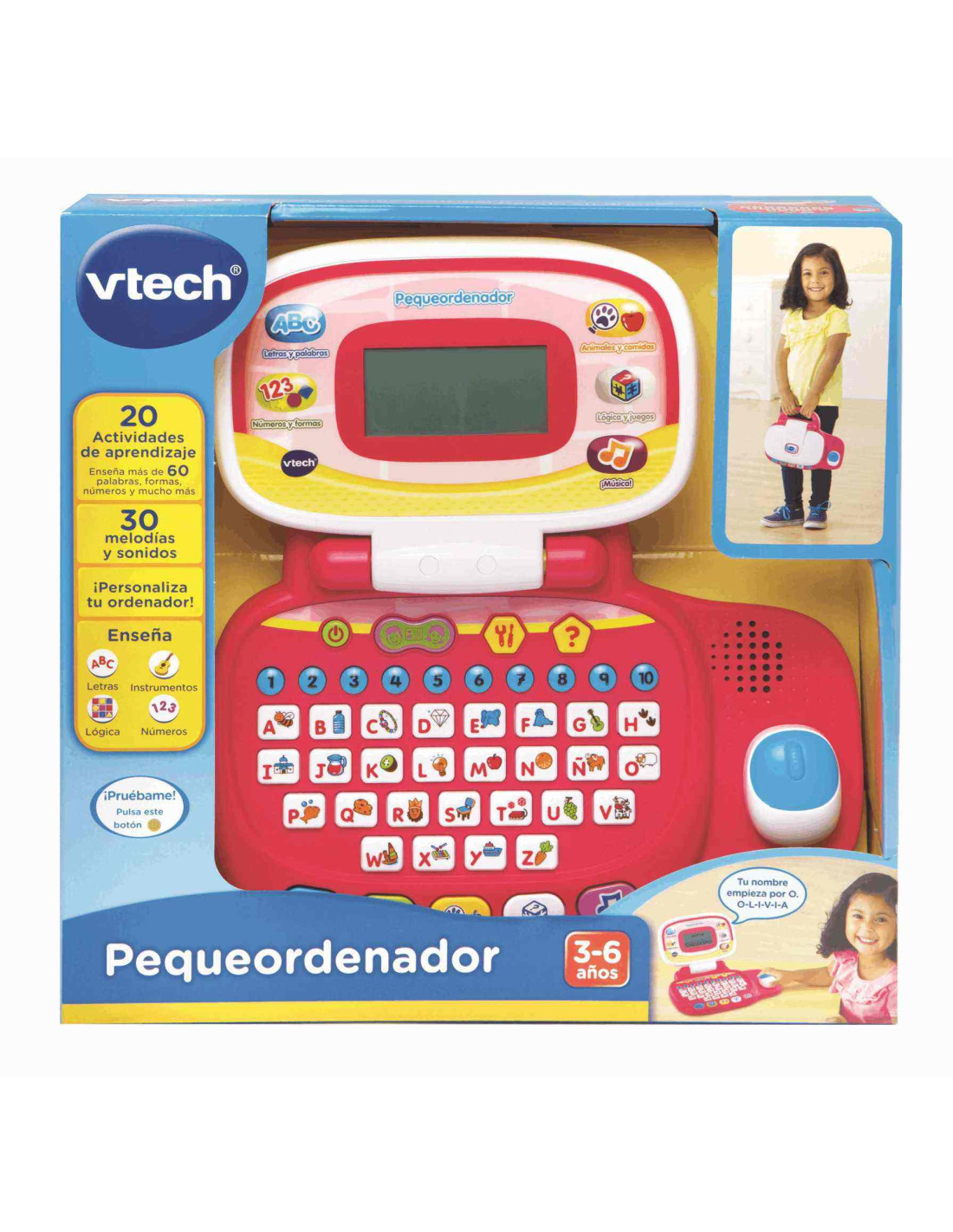 Tiene unas medidas de 27,1 x 6,8 x 20,9 cm y menos de 1 kg de peso (859,99 g). Este portátil está fabricado por Vtech y está hecho con plástico ABS resistente de larga duración. Utiliza 2 pilas AA, posee opciones para ajustar el volumen y asegura un consumo energético bajo.