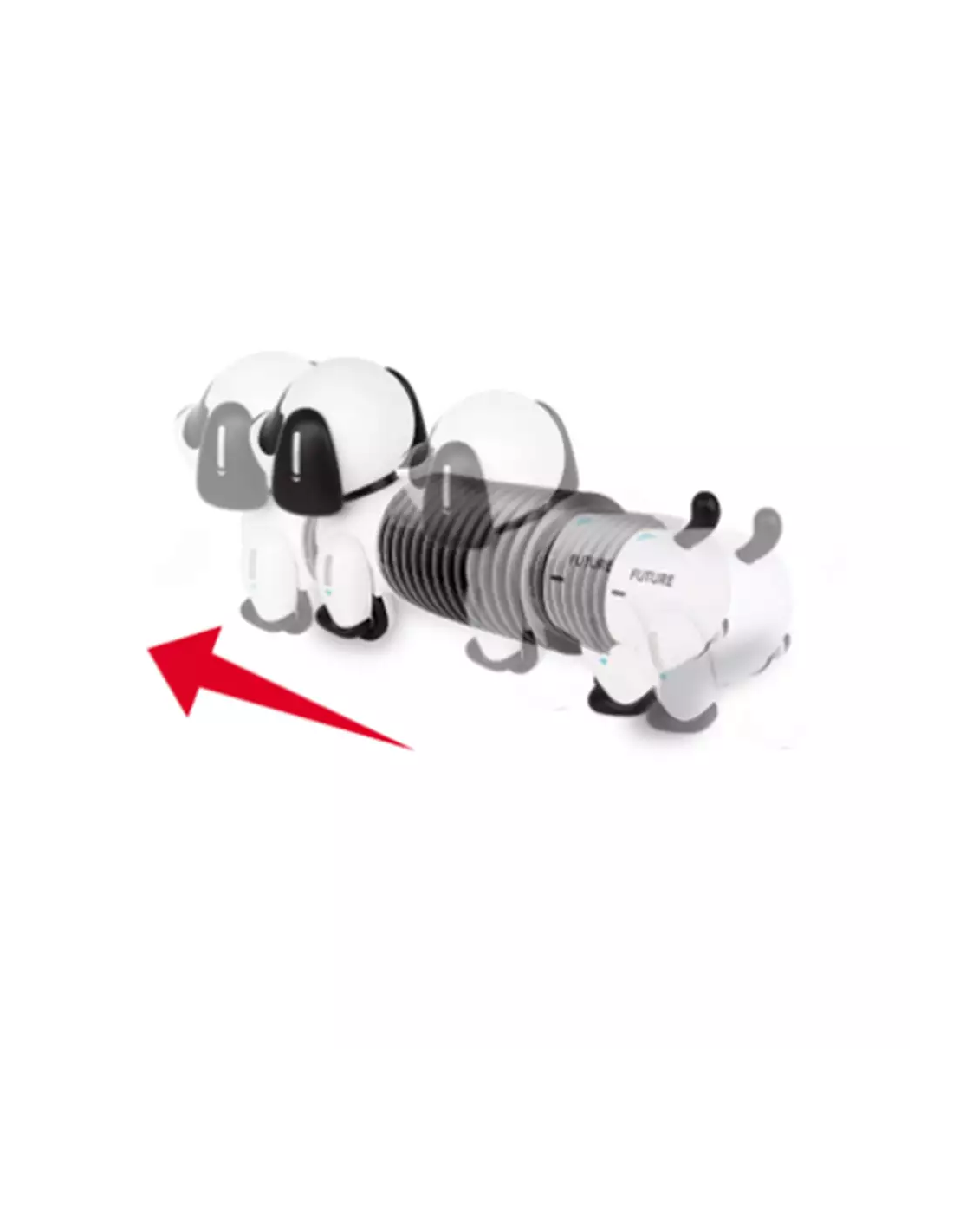 Diseño futurista y cuerpo extensible que simula un auténtico perro salchicha robótico.