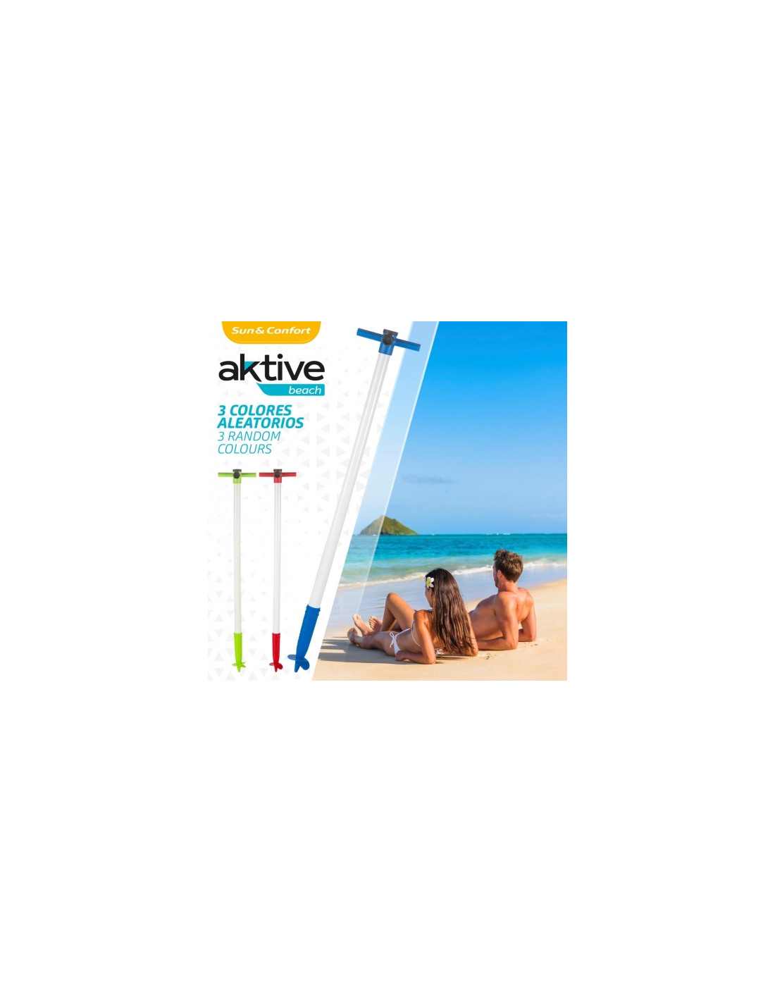 Color BabyPincho para sombrilla con mástil de Aktive Beach. Mide 90 cm y es el accesorioideal para aumentar la altura de tu sombrilla o simplemente, instalarla en la arena de la playa. Tiene 2 asas en la parte superior con aplique para sujetar la sombrilla y una espiral en el extremo que se introduce en la arena. Apta paramástiles de hasta 25 mm. Disponible en verde, azul y rojo. Mástil con pincho para sombrillas de Aktive Beach Mástil de 90 cm de largo, apto para insertar mástiles de hasta 25 mm de diámetro Cuentan con un pincho en la parte inferior para fijar la sombrilla en la arena Disponible en tres colores: azul, rojo y verde Fácil de colocar en la arena gracias a los mangos que incorpora