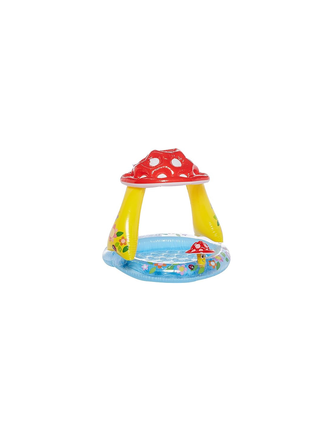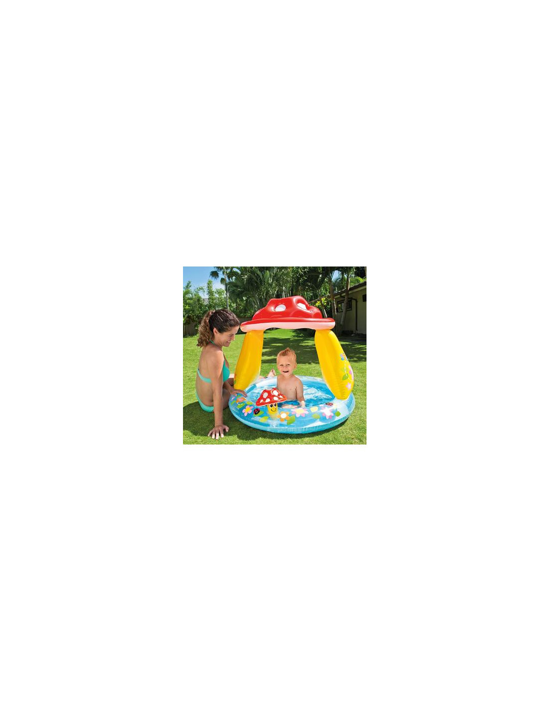 Piscina hinchable ideal para los más pequeños. Su forma de seta les permite estár disfrutando del agua al mismo tiempo que les protege del sol.