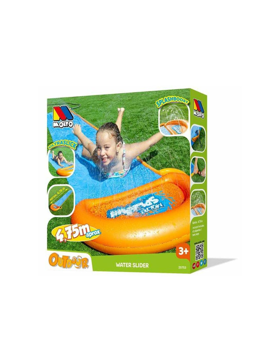 MoltoEl Water Slider 1 Pista Desliz 4,70 m 25753 es un tobogán acuático doméstico de 4,70 metros de longitud, perfecto para disfrutar de momentos refrescantes y cargados de diversión en el jardín, terraza o patio. Con un diseño sencillo y seguro, esta pista deslizante se conecta directamente a una manguera para ofrecer un recorrido acuático continuo que encanta a niños y adultos por igual.