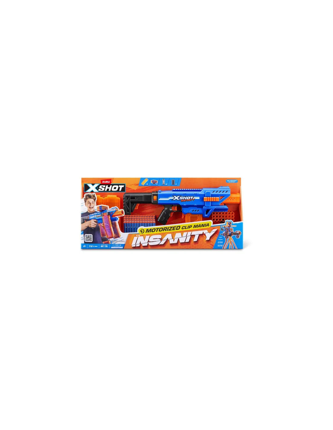 Zuru¿Y si lleváramos el juego a otro nivel? Eso es lo que ofrece el Insanity Clip Mania Blaster . Está motorizado para multiplicar el impacto de quien lo sostenga. ¡Combos, munición y acción con XSHOT Insanity ! Este blaster incluye 4 cargadores y extensiones para evitar tener que recargar.
