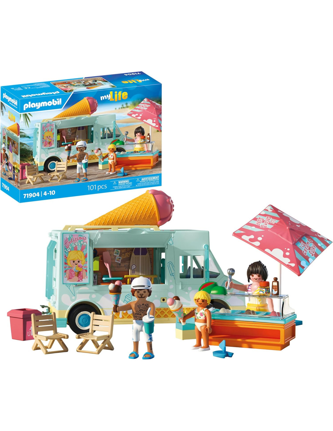 Contenido del set: incluye camión de helados con tienda de surf, dos figuras, tablas de surf, equipo de snorkel, cucuruchos, accesorios y sombrilla. El regalo perfecto para pequeños fans del verano.