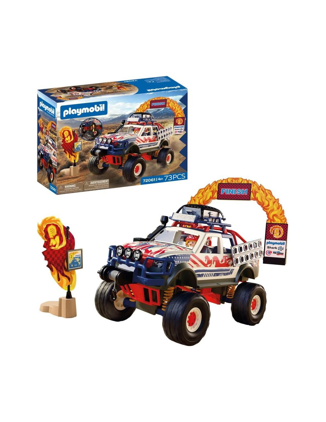 Equipamiento completo del piloto y arco de salida y meta: casco, corona de vencedor, herramientas, bidón y línea de meta para escenas de carrera auténticas.