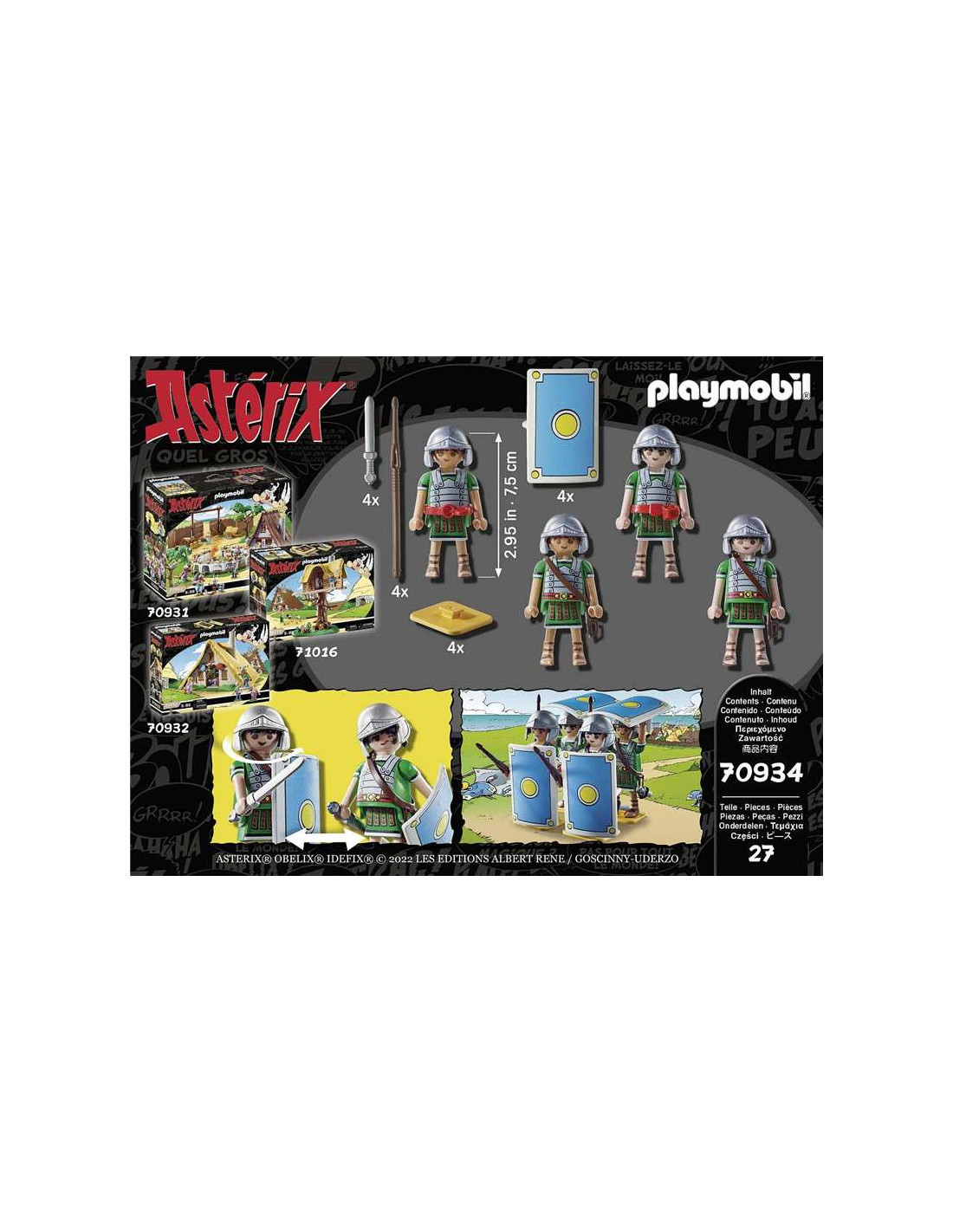 Con el set tropa de romanos de Playmobil Astérix podrás organizar tu ataque a la Galia. Contiene 4 muñecos de soldados romanos con escudo lanza y accesorios.