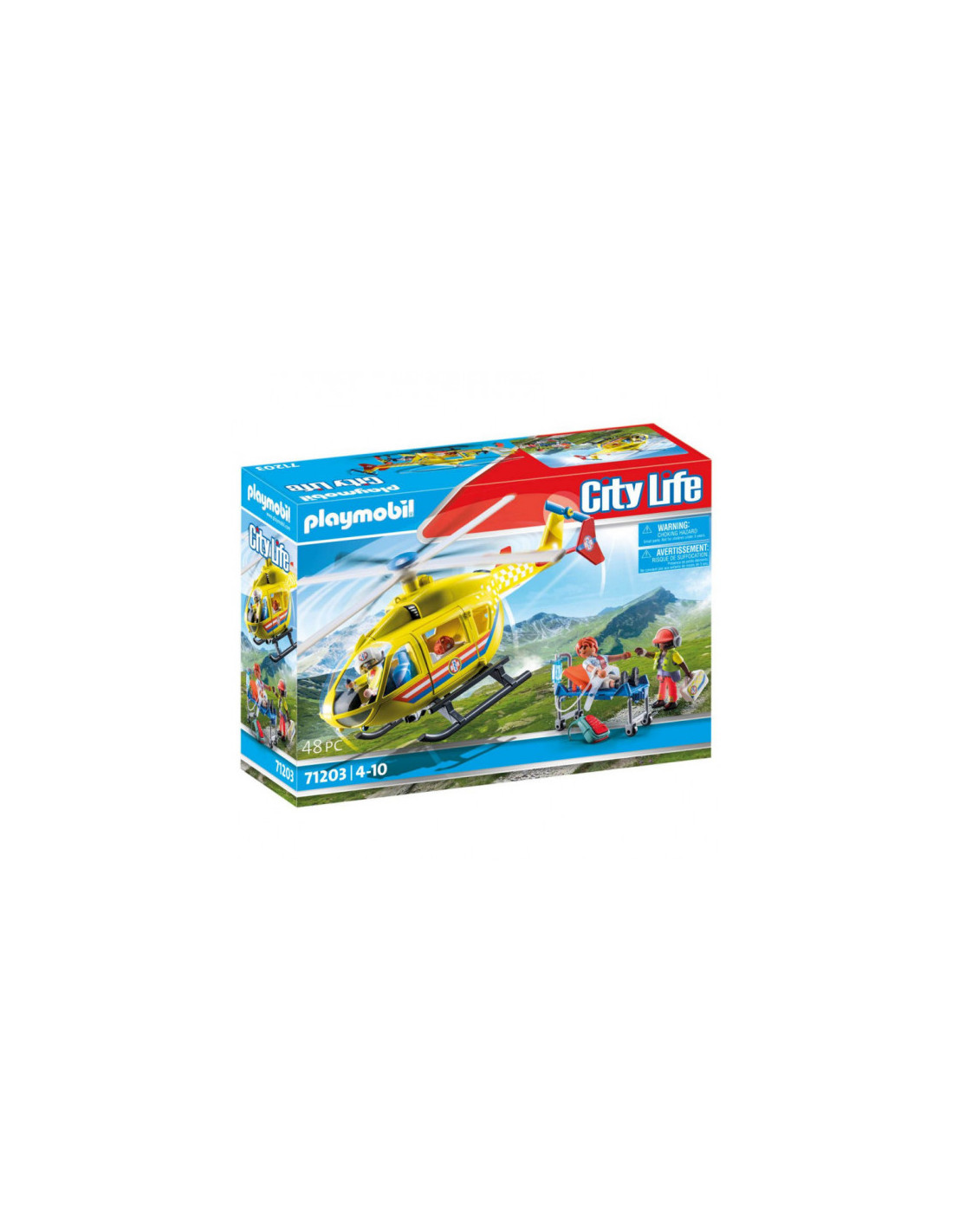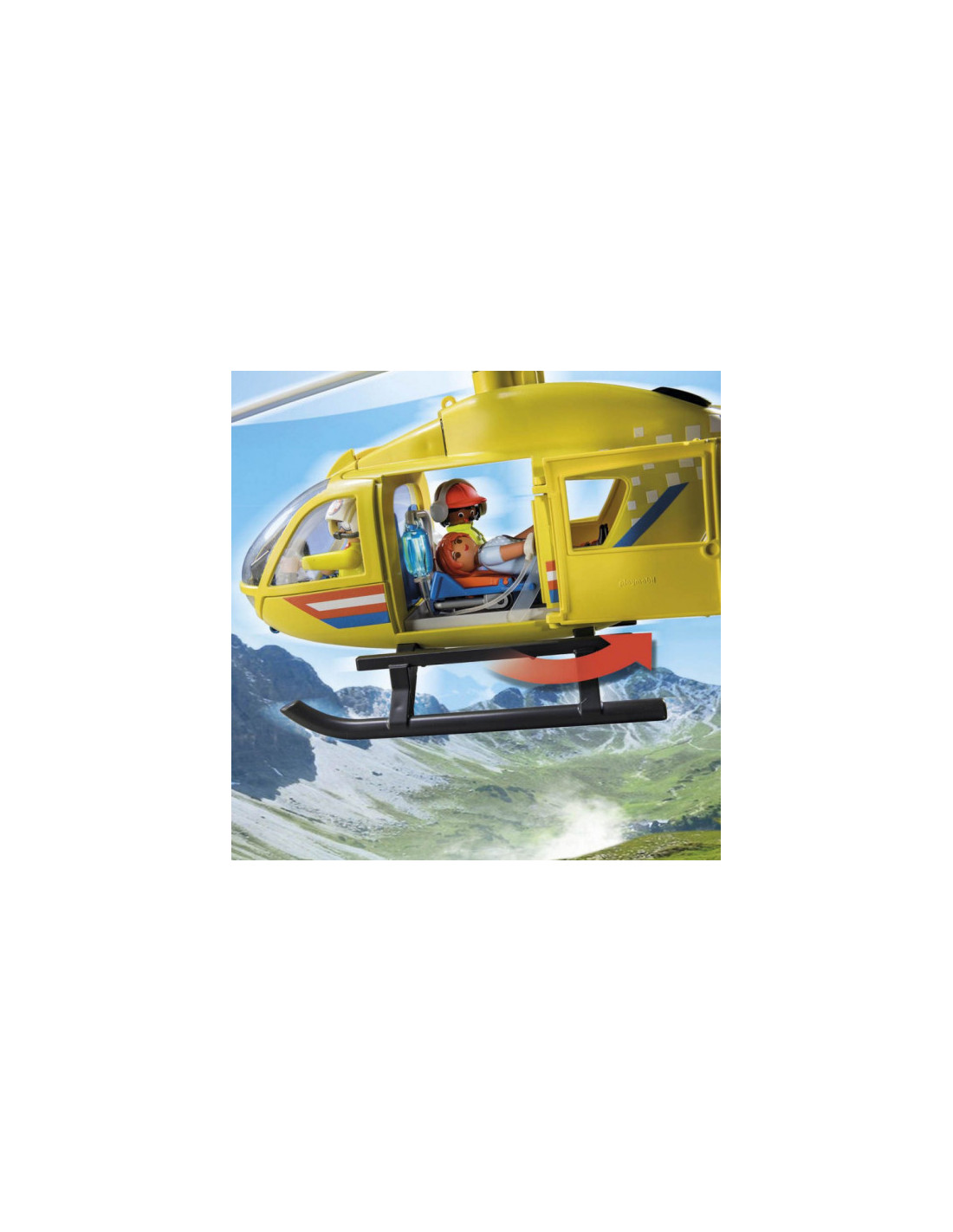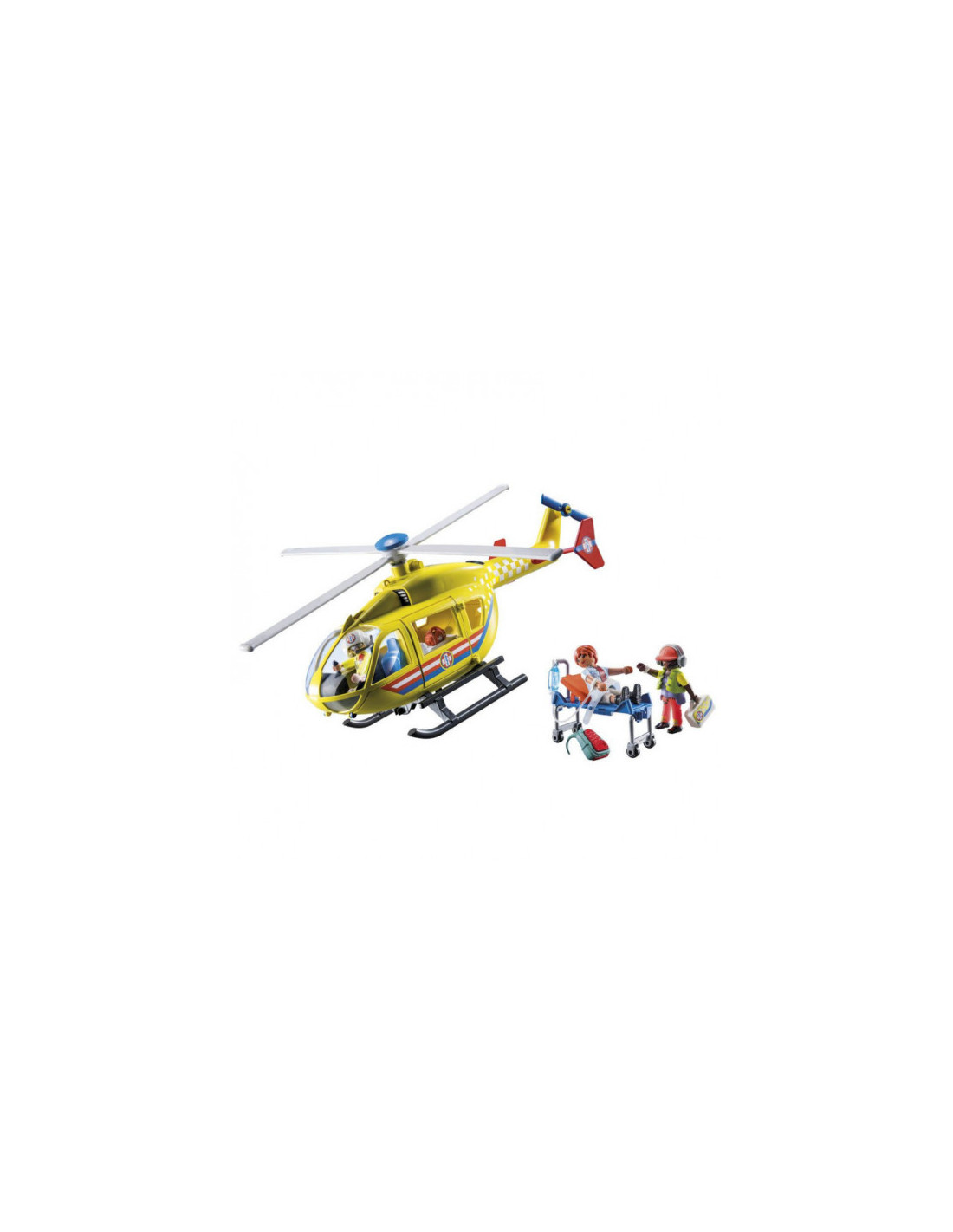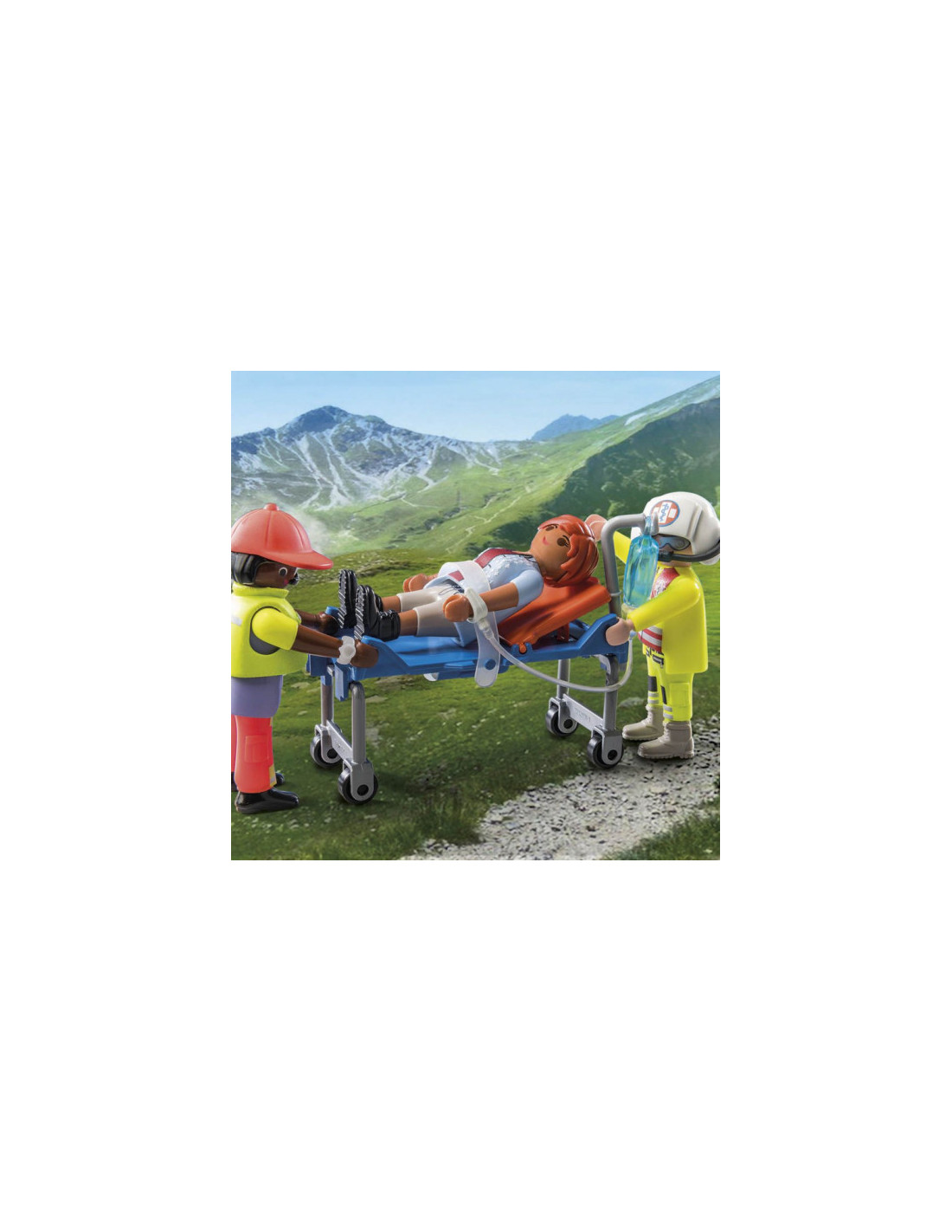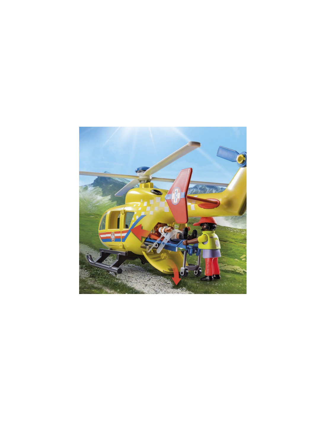 Con el helicóptero de rescate con palas de rotor móviles, un excursionista es transportado al hospital en un instante. En la camilla de rescate estará segura y bien atendida durante el vuelo. Contenido: Figuras: 1 piloto de rescate, 1 copiloto de rescate femenino, 1 herido; Accesorios: 1 helicóptero de rescate, 1 camilla de ambulancia, 1 suero, 1 juego de instrumentos de primeros auxilios, 1 mochila, 1 bolsa de primeros auxilios, 1 botiquín, material de vendaje, 1 casco con micrófono, 1 gorra de visera, 1 auriculares, 1 reloj
