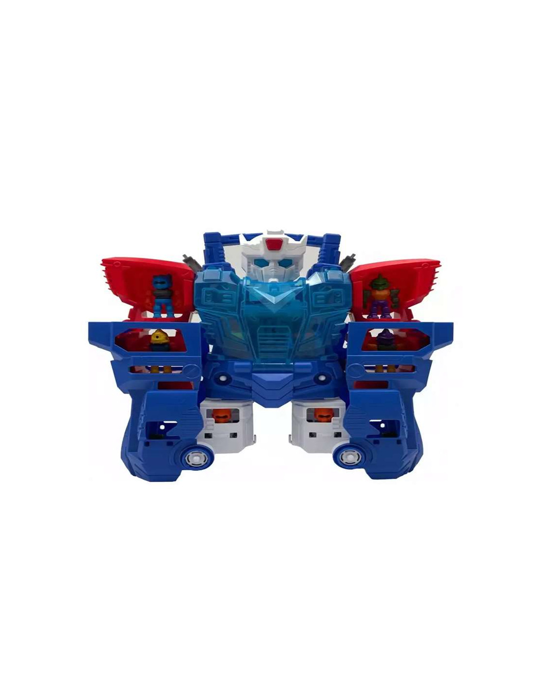 Toy PlanetCon el Playset Robot Transformable tienes el poder en tus manos. Este robot gigante no solo es imponente, ¡también esconde mini figuras de combate en su interior! Abre sus compartimentos y lanza a tus personajes a la acción en segundos.