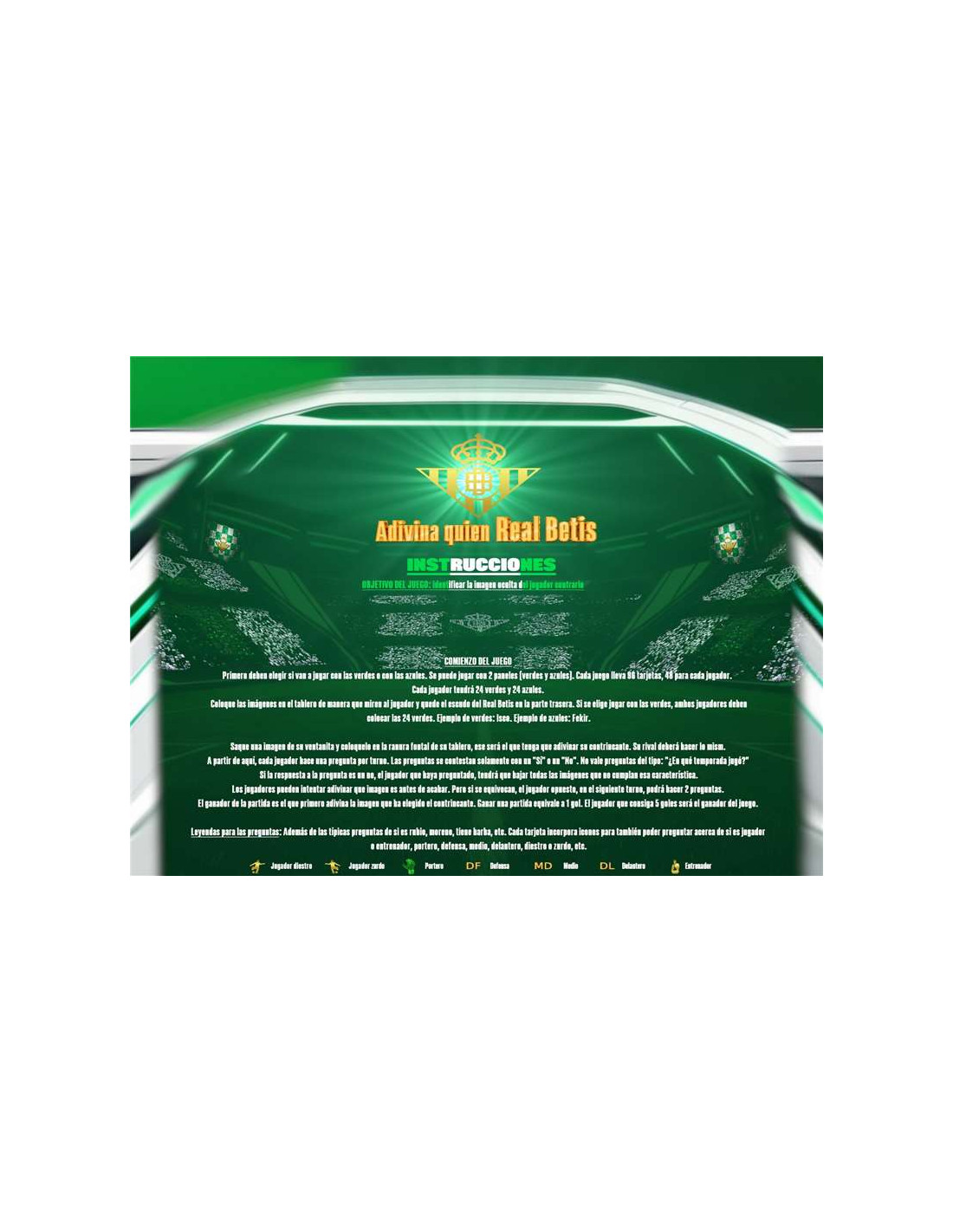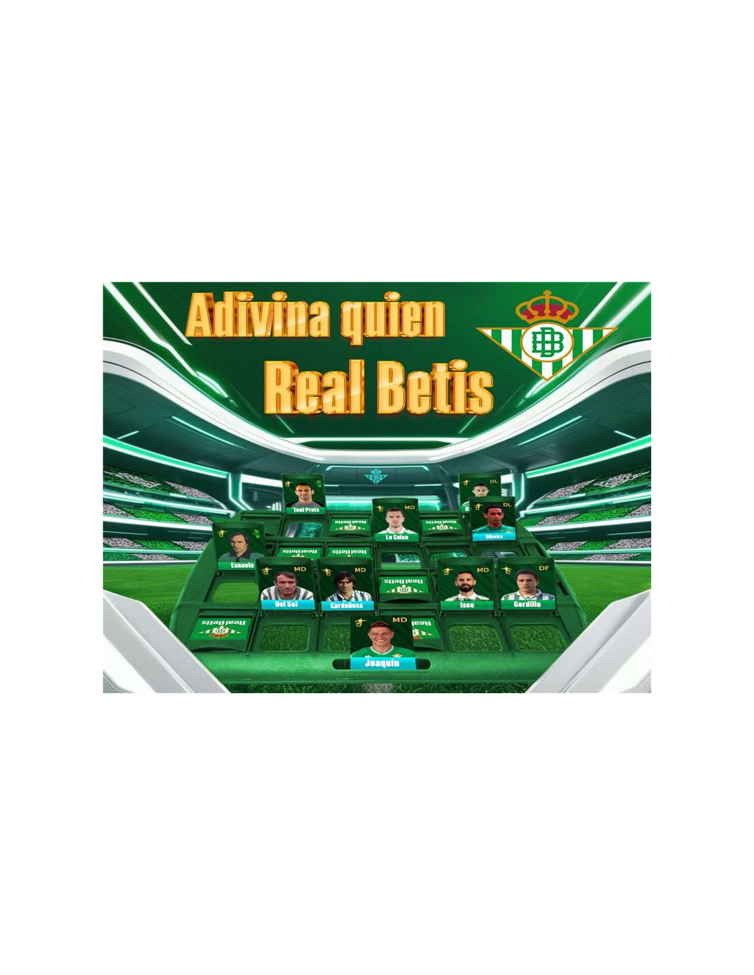 Arte Cañete¡Haz que la diversión y el fútbol se unan con el quién es quién del Real Betis Balompié! Este clásico juego de mesa te permite desafiar a tus amigos y familiares con un toque verdiblanco. El objetivo es simple: haz preguntas y adivina qué personaje es el elegido entre las figuras más emblemáticas del Betis. ¿Será un entrenador, jugador, zurdo, diestro, tiene barba, es portero, leyenda histórica?