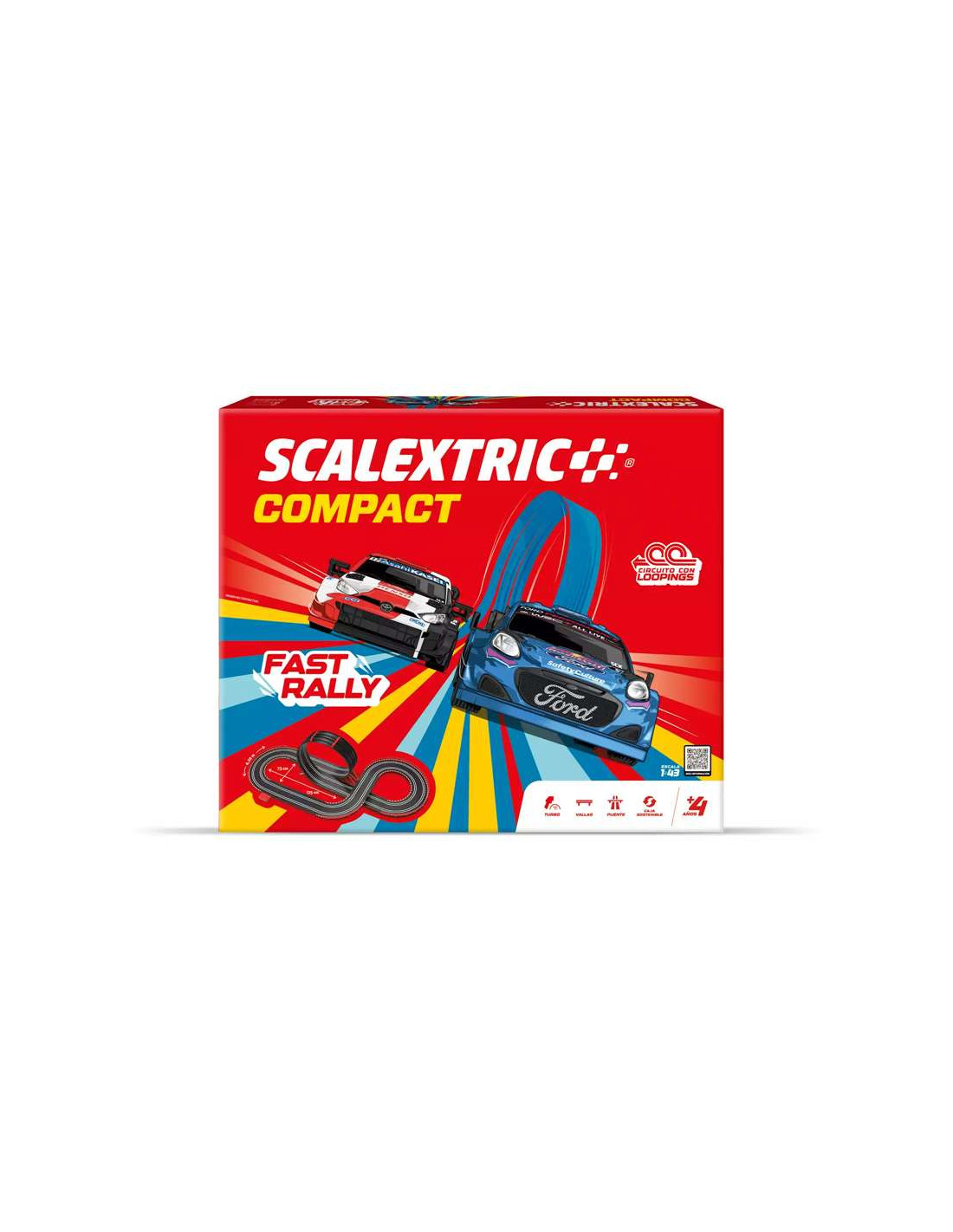 Scalextric¡Prepárate para disfrutar de un enfrentamiento muy especial! ¡Al hacerte y montar en casa el espectacular Scalextric Compact 1:43 Circuito Fast Rally con 2 Vehículos!