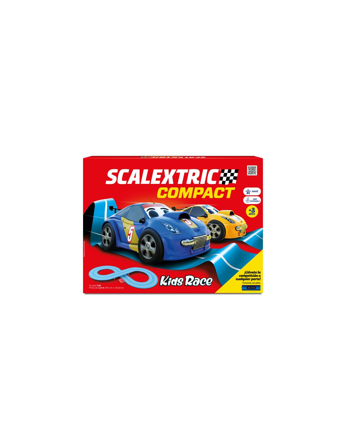 ScalextricSCX Compact Kids Race: Disfruta de la última tecnología de Scalextric en un circuito de carreras de 2,3 metros de pista en forma de ocho.