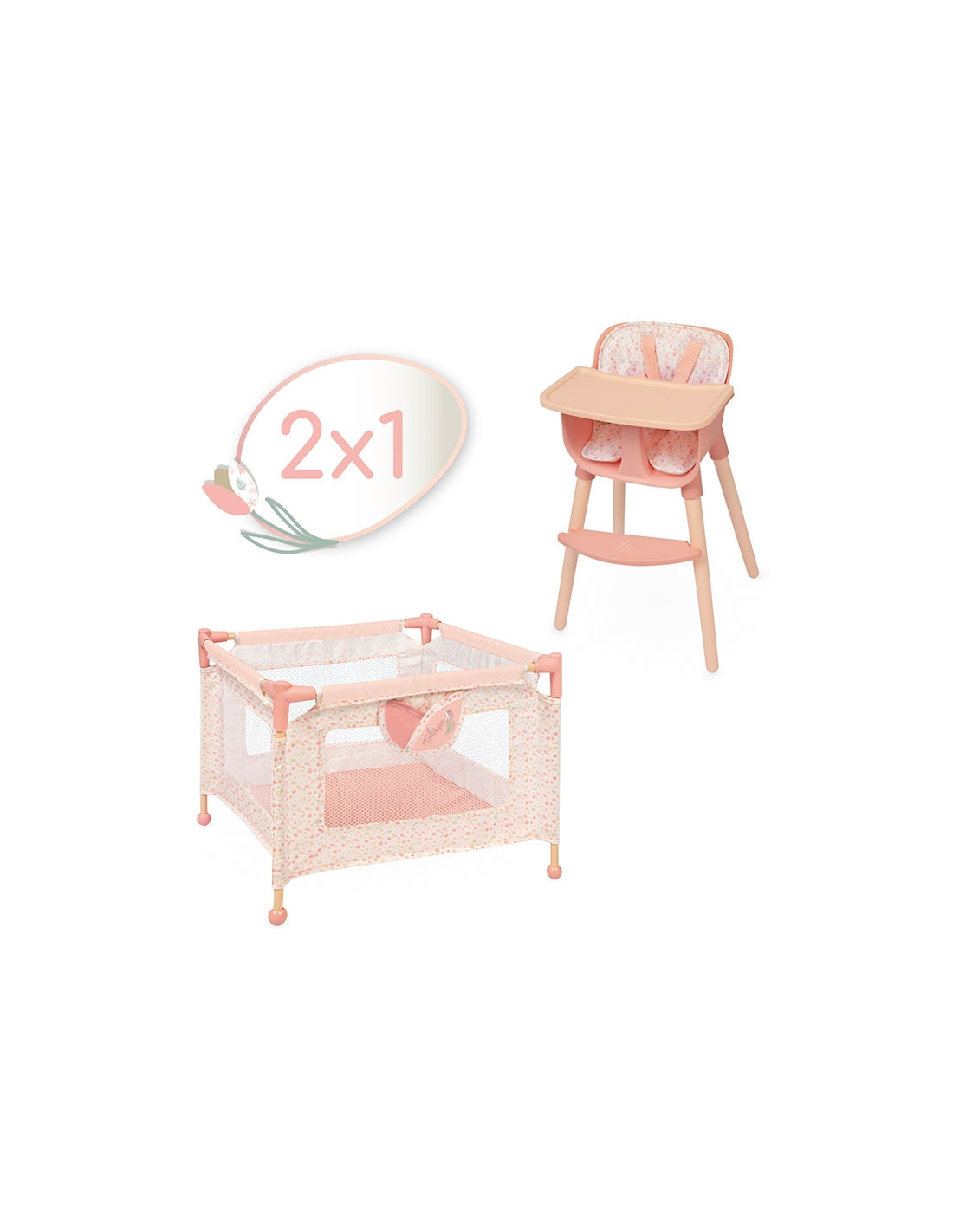 DeCuevasHazte con un dos en uno muy especial para el juego de imitación, este set que incluye una preciosa trona y un parque de juegos, con diseño especial de la nueva y colorida linea Tulipe. Ideal para disfrutar del juego de imitación, jugando y cuidando de los bebés de juguete más especiales del lugar.