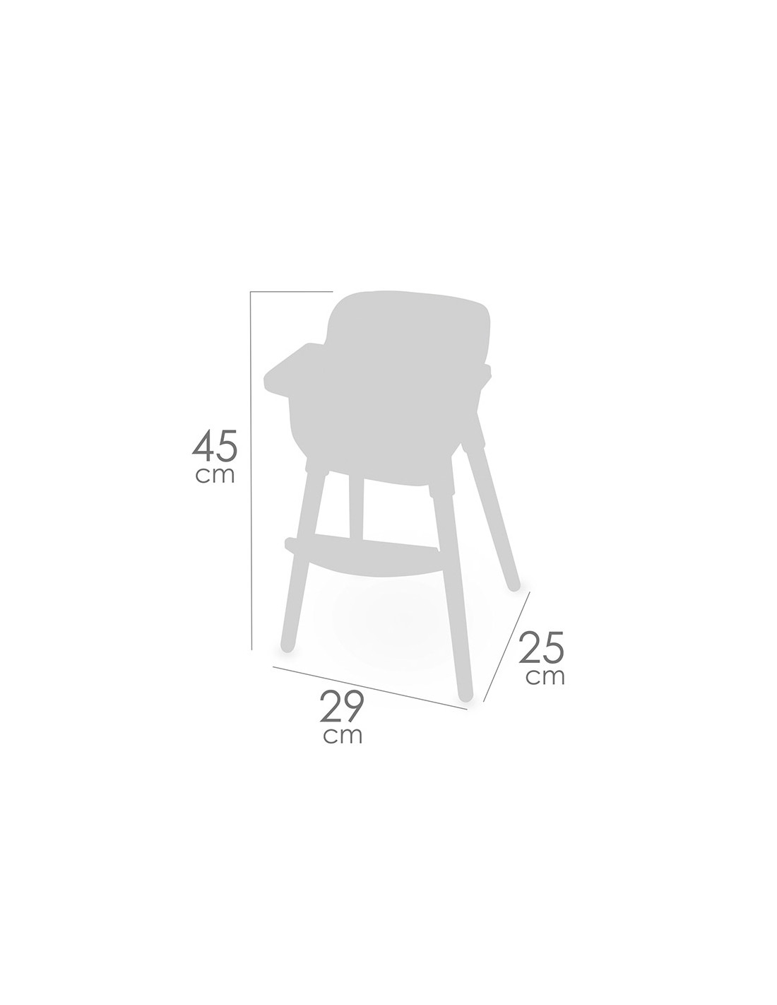 Medidas aproximadas de la trona: 45 cm de alto, 29 cm de ancho y 25 cm de fondo.