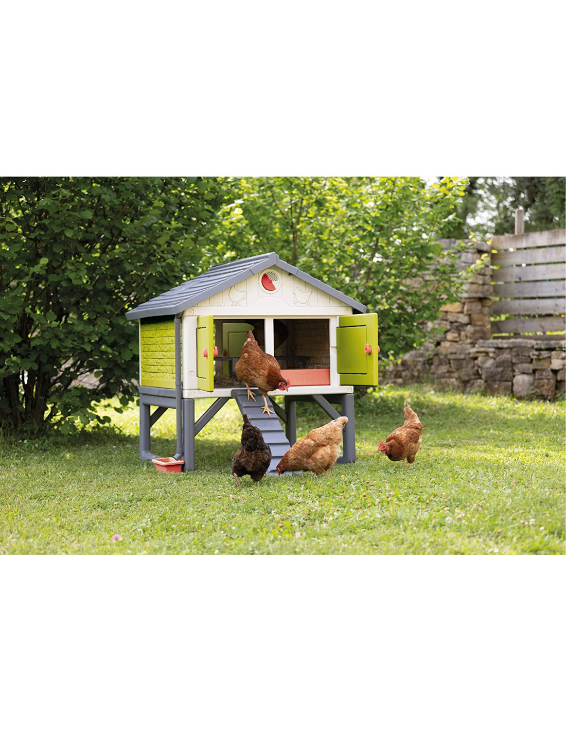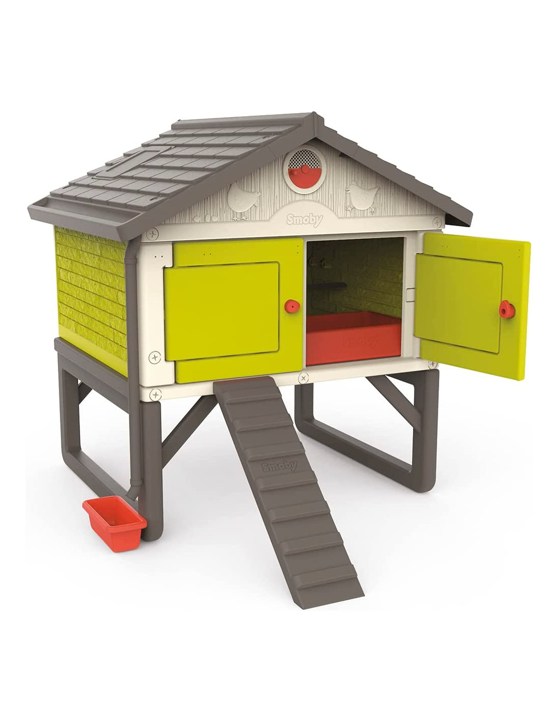 Smoby- Gallinero infantil elevado de vistosos colores, Apto para 4 gallinas