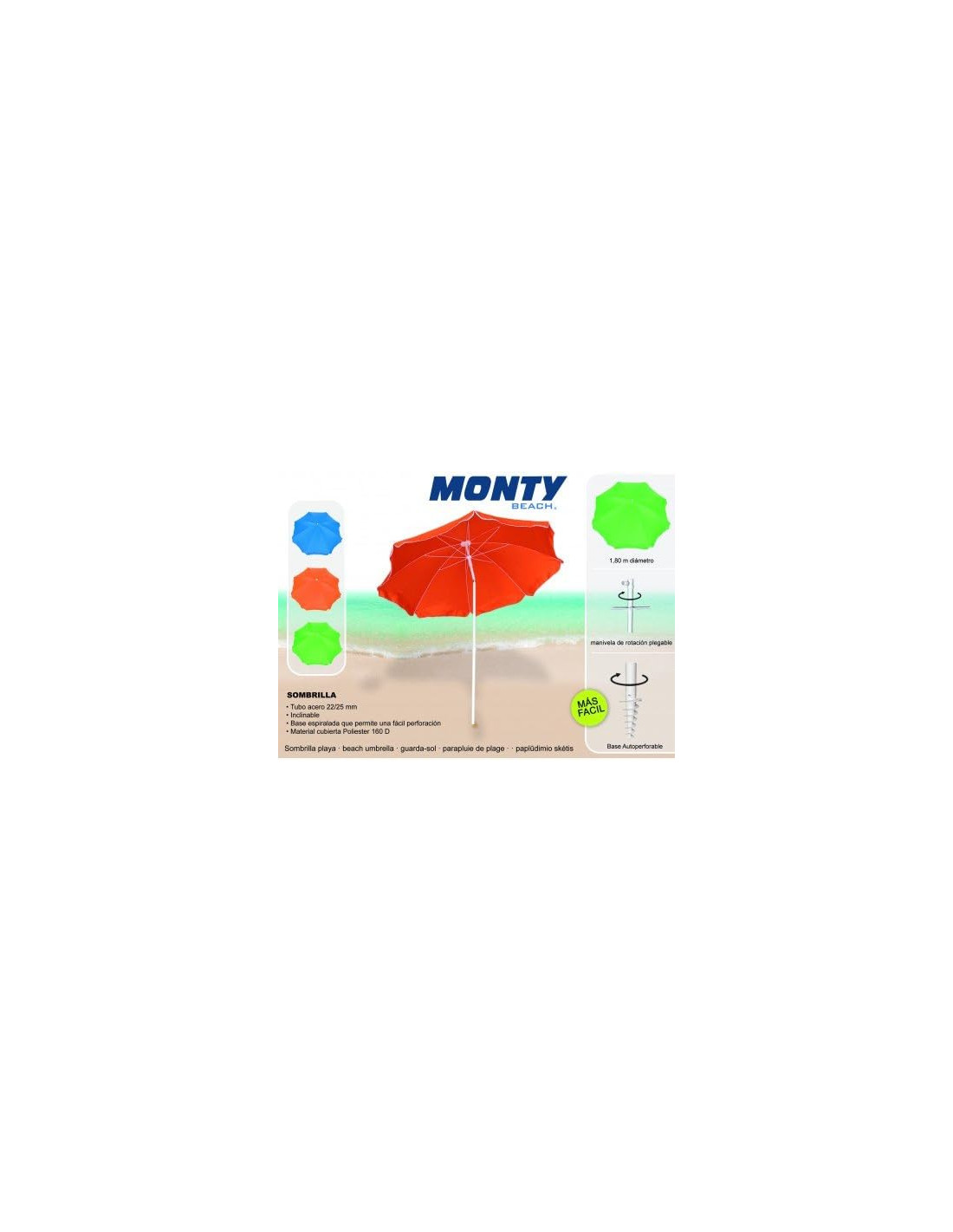 Sombrilla autoperforante 3 c lisos 180cm