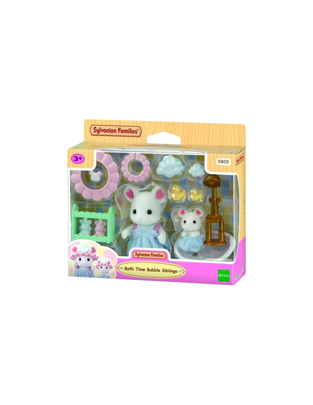 EpochEl baño es divertido con este set que incluye el niño Topo Marshmallow y el bebé acunado con varios accesorios de baño.