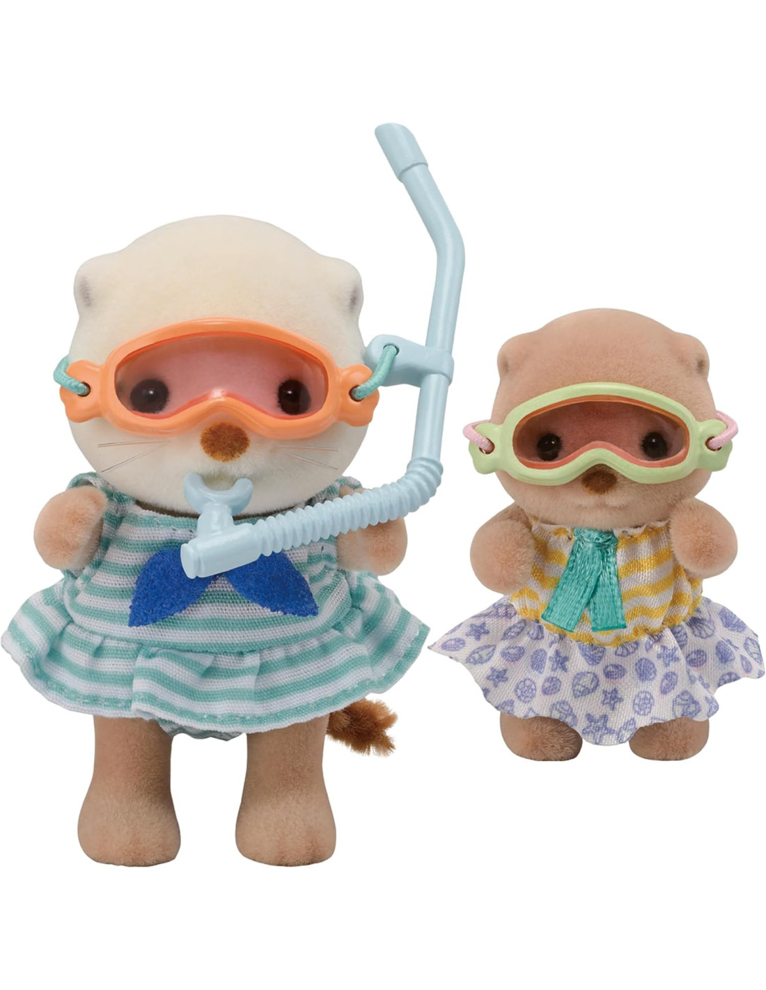 EpochLa familia Sea Otter son adorables personajes redondos; este juego incluye a la niña y el bebé de nutria marina con artículos para jugar en el mar