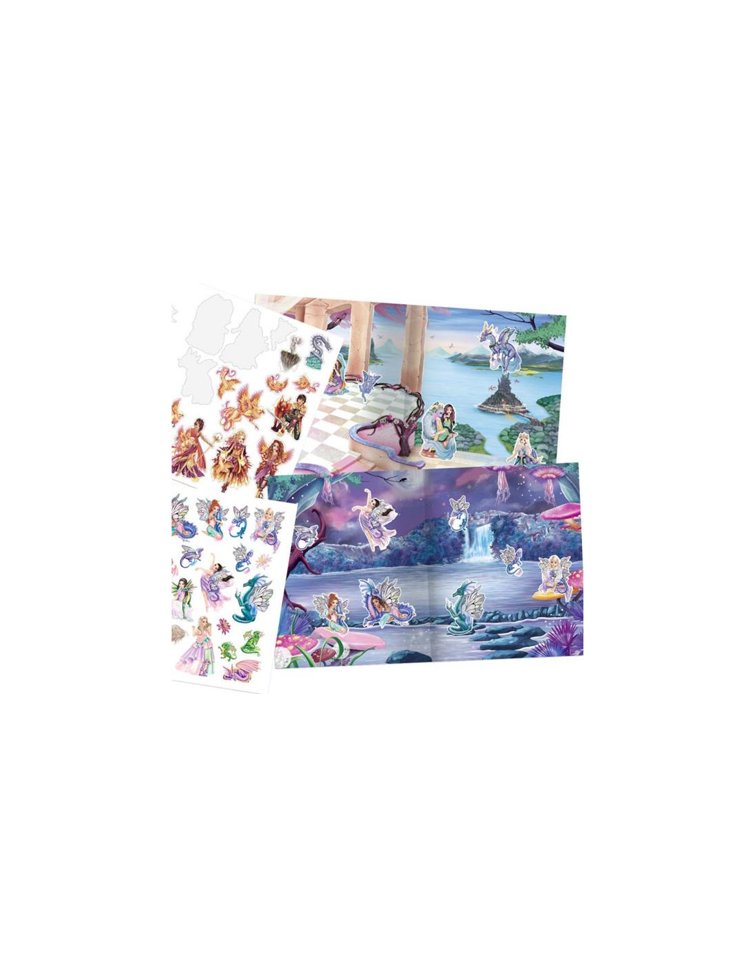 Incluye 3 hojas de pegatinas con muchos diseños diferentes de dragones, elfos y hadas para pegar, coleccionar o intercambiar con tus amigos