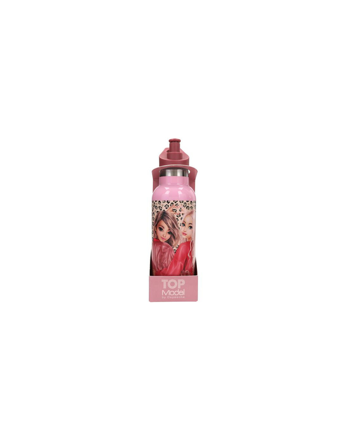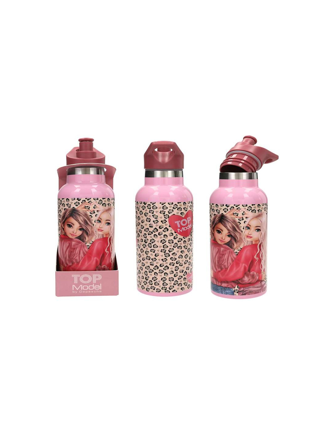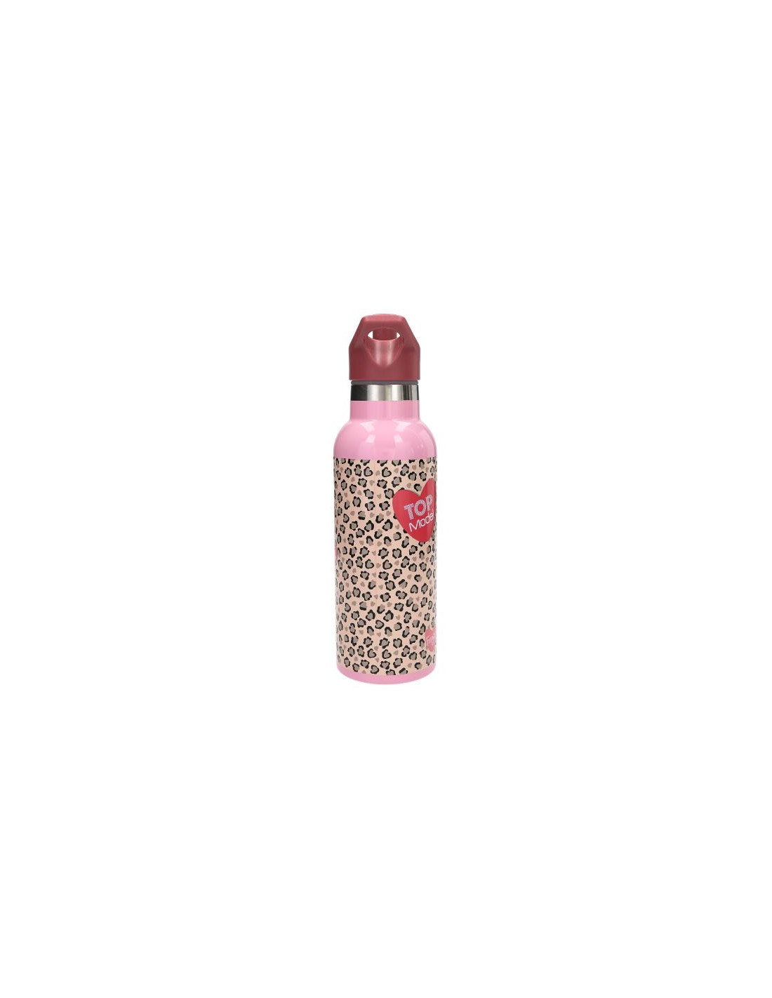 ¡Amor por el estampado animal! Esta botella de acero inoxidable de TOPModel está completamente decorada con un diseño animal print muy cool y, además, lleva dos modelos fantásticas y elementos en rosa. El módulo de la boquilla es de color rojo cereza y está hecho de plástico libre de BPA. La botella tiene una capacidad de 500 ml. No apta para microondas.