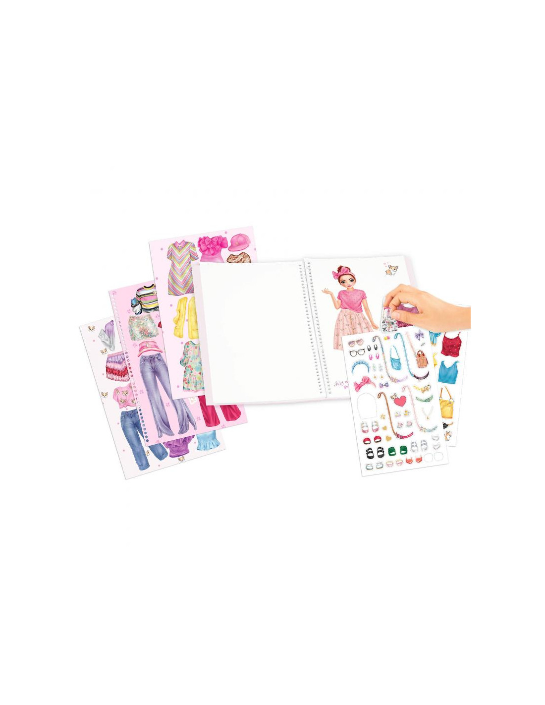 DepescheEn el libro de pegatinas encuadernado con gusanillo TOPModel Dress me up todo gira en torno a looks chulísimos: 7 hojas de pegatinas (5x pegatinas de papel, 2x pegatinas de vinilo) de ropa a la última y complementos para crear los estilismos de 21 modelos y sus mascotas.
