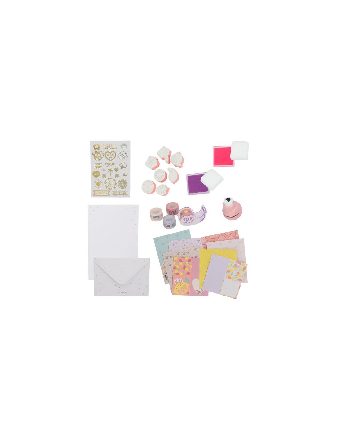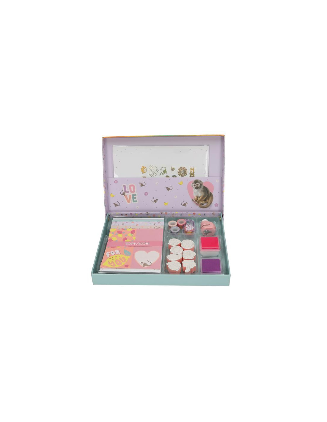 Depesche¡Una animalada de diversión escribiendo cartas! El set Love Letter de TOPModel tiene un diseño precioso a base de monitos, frutas e iconos veraniegos y se compone de 10 hojas de papel de carta, 10 sobres, 1 hoja con pegatinas plateadas, 1 portarrollos con 4 cintas adhesivas, 1 perforadora de corazones, 2 tampones, 7 cuños y 1 guía con instrucciones para manualidades.