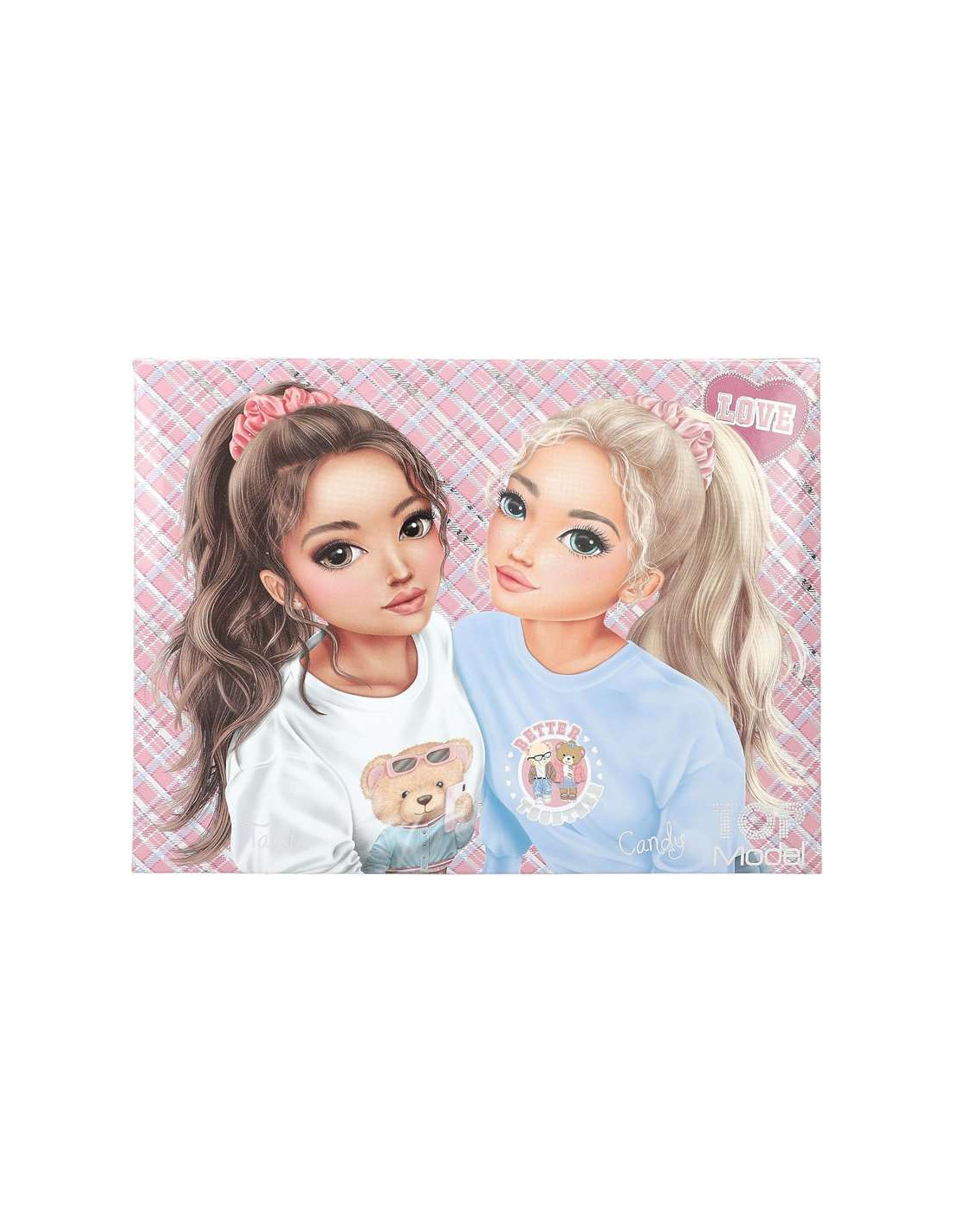 Diseño: TOPModel Team Teddy de Depesche - En rosa y azul claro, con motivo de modelo, estampado de cuadros y ositos de peluche.