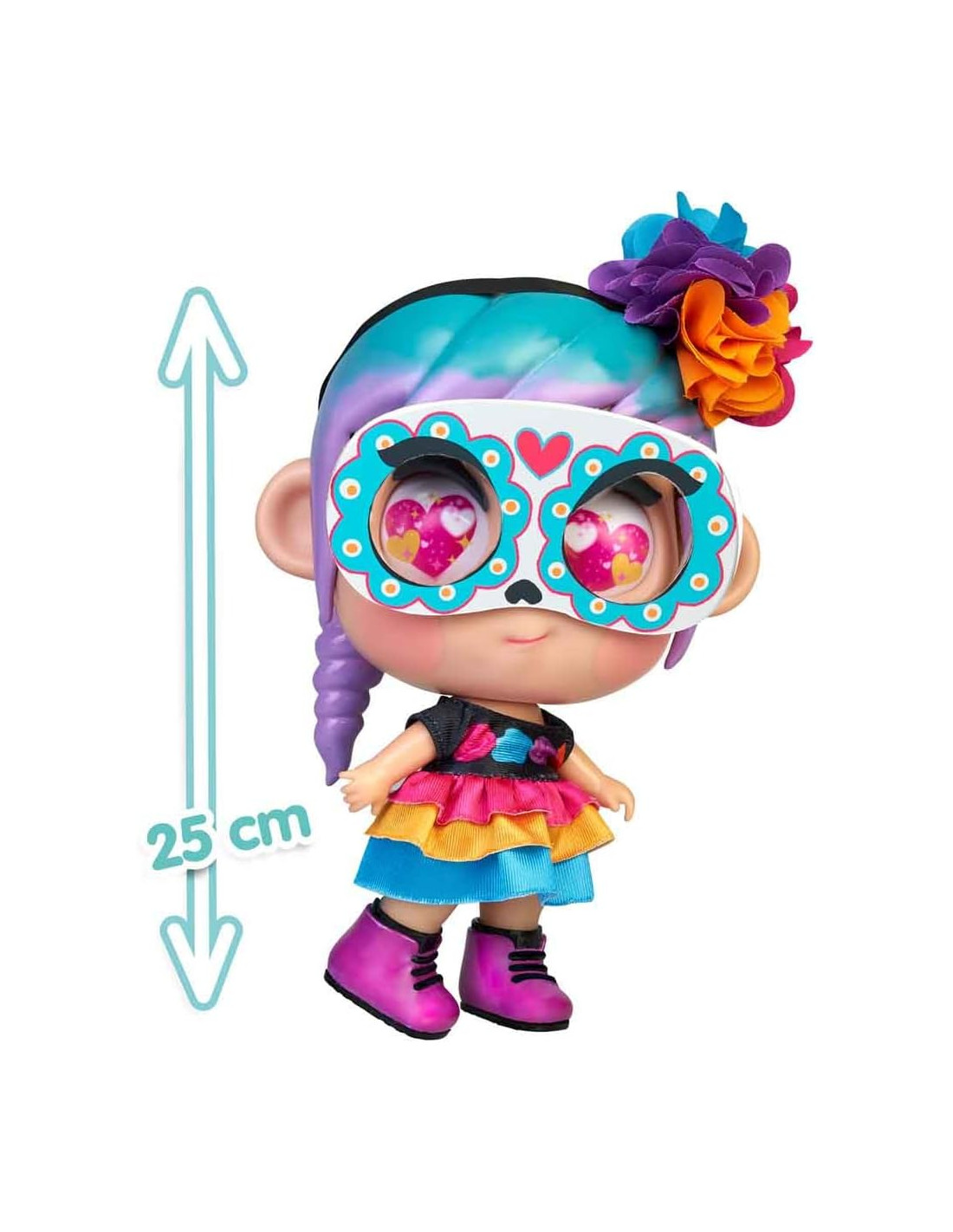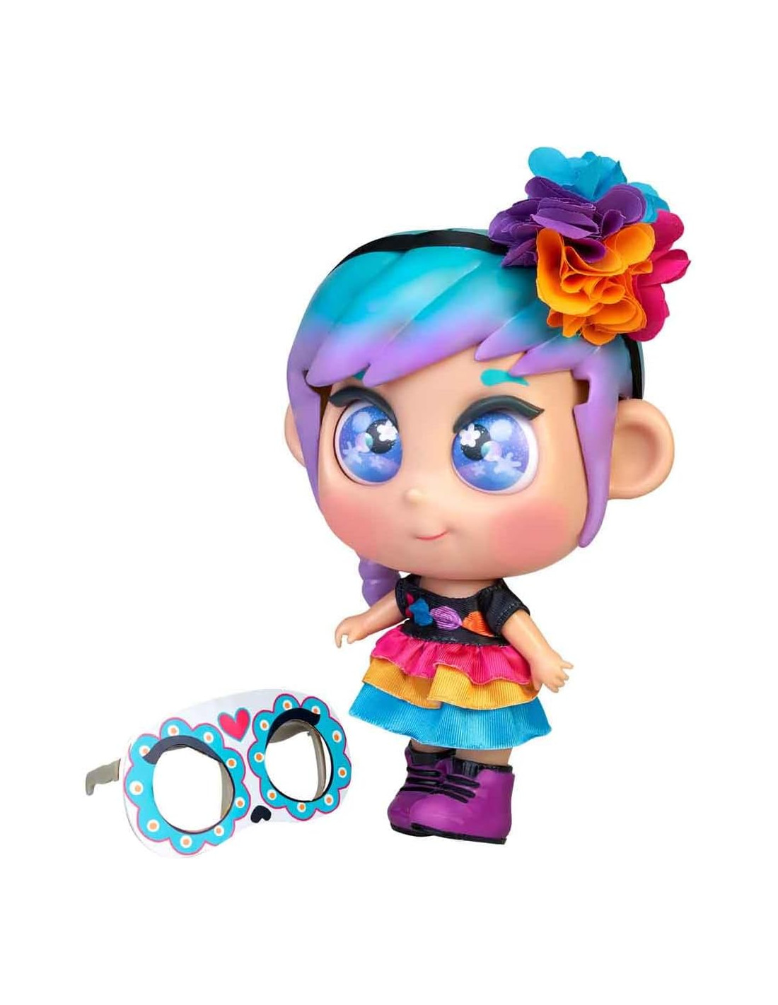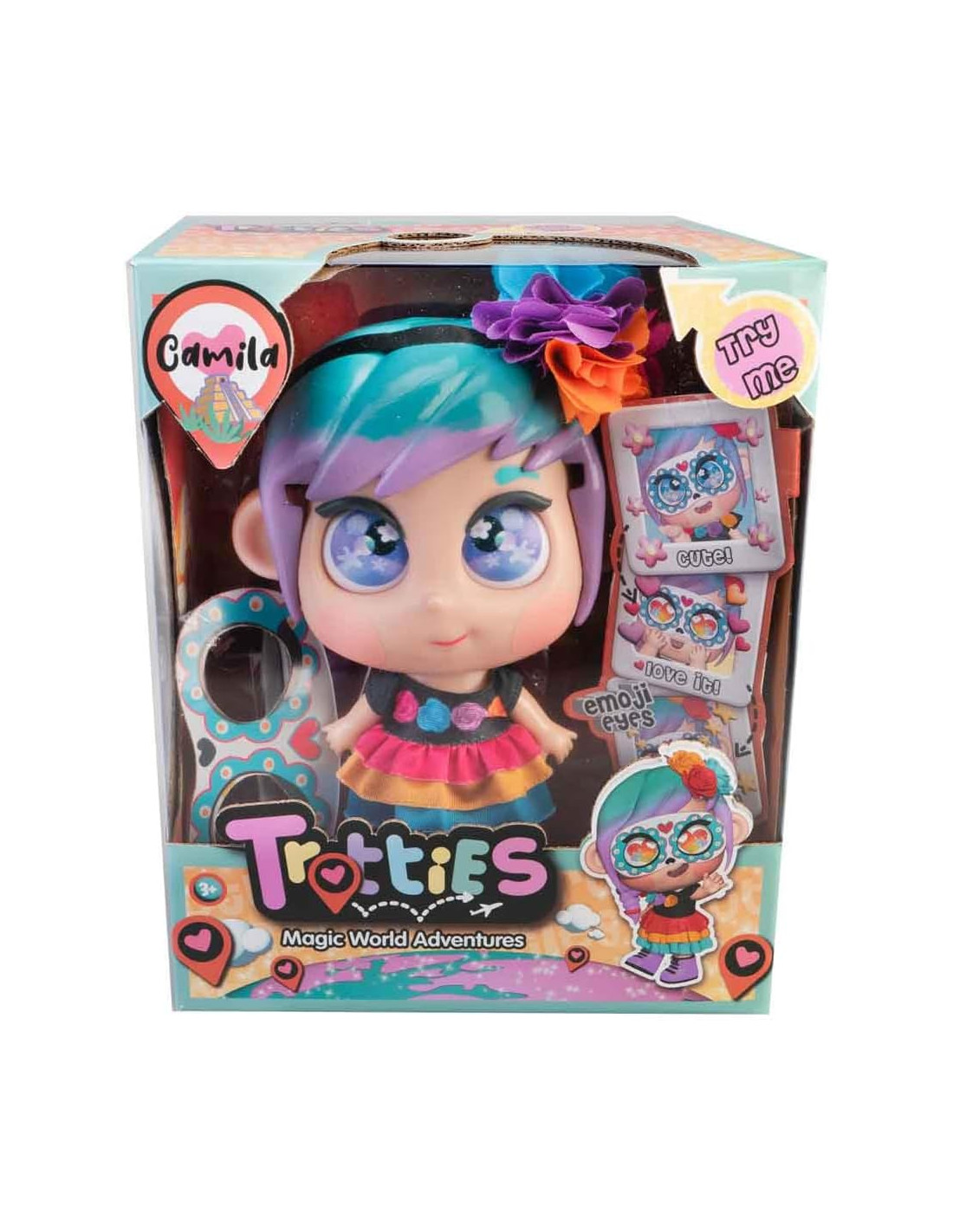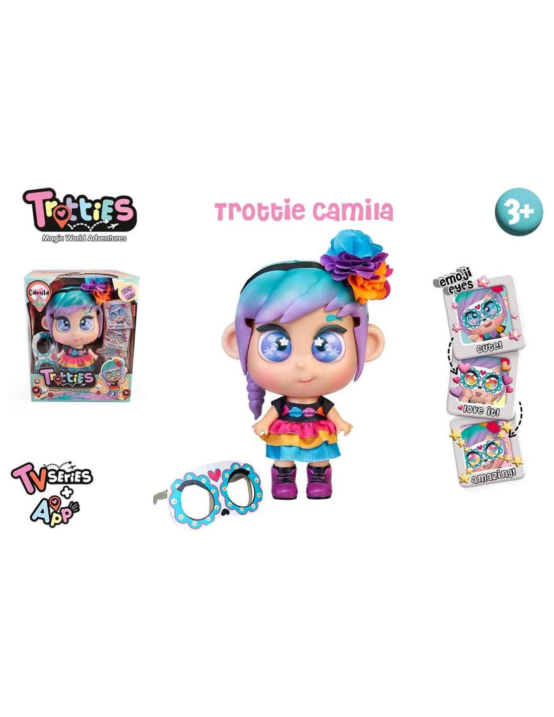 Camila es la muñeca Trotties de México. Su súper poder increíble el poder de hacer que llueva. Viene vestida con un colorido traje de Catrina y tiene ojos emojis cambiantes con 3 expresiones diferentes. Incluye gafas / antifaz para convertirse en Catrina. Muñeca con 5 puntos de articulación.