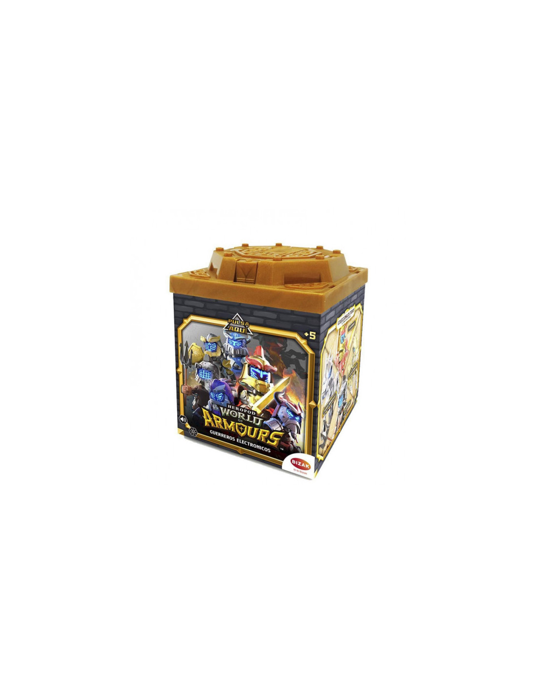 BizakOs presentamos Heropod World of Armours, fantásticos Guerreros electrónicos articulados que vienen en el interior de una caja ciega cuya tapa se puede utilizar como soporte para los guerreros. Cada caja incluye +30 piezas para construir tu Guerrero de 12cm o un Caballo de Guerra favorito. Pulsa el casco del Guerrero y sus ojos LED parpadearán con efectos de sonido y movimiento de cejas. Los caballos también tienen ojos LED. Dale palmaditas en su lomo para oír el sonido del trote o presiona su cabeza para oír el relincho. Todos los guerreros con compatibles con los caballos.